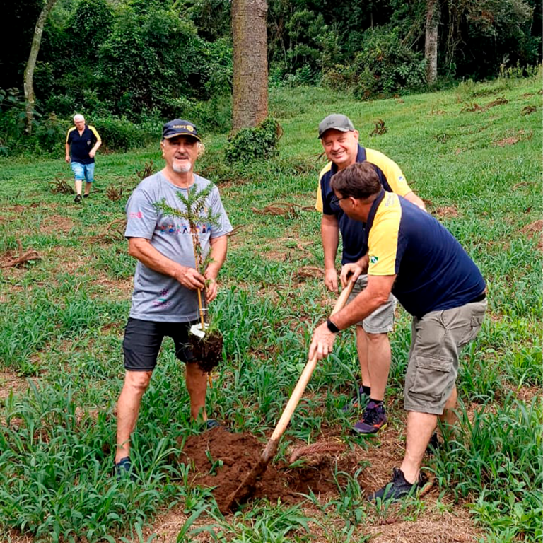 Dando início aos projetos e ações em 2024, os companheiros do Rotary Club de Guarapuava Lagoa realizaram no sábado, 20 de janeiro, o plantio de mudas de araucária na sede do Projeto Anjos Inocentes. A ação atende aos parâmetros da sétima área de enfoque do Rotary International, que como o próprio nome define, tem o objetivo de preservar e conservar o Meio Ambiente e os recursos naturais.