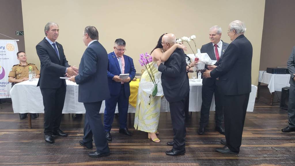 O protocolo da festiva contemplo a admissão de 3 novos associados ao clube, homenagem ao companheiro Jair Kultz (associado fundador do Rotary Lagoa) e o recebimento de um certificado de reconhecimento pelos serviços prestados, entregue pela companheira Quilair Rodrigues de Oliveira Santini, presidente do Rotary Club de Guarapuava.
