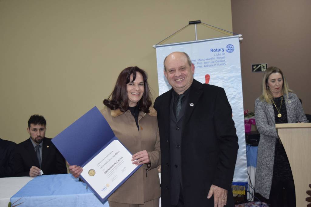 Durante a posse foram entregues as medalhas Paul Harris Fellow aos companheiros do clube Vera Lúcia Martins Ribas e Francisco Jose Fernandes Alves.
