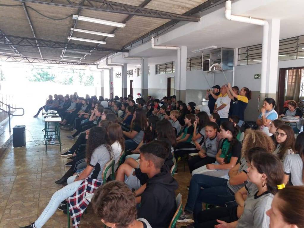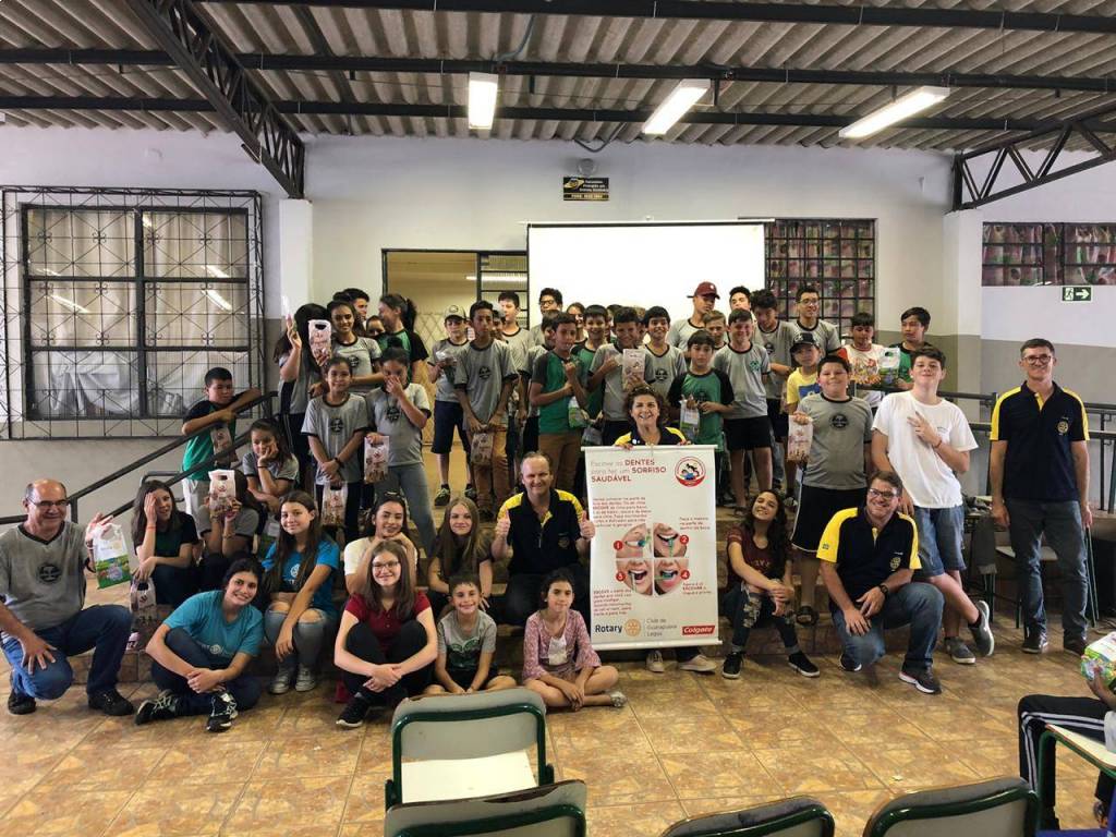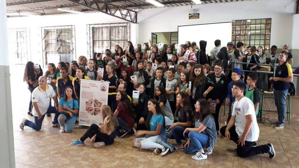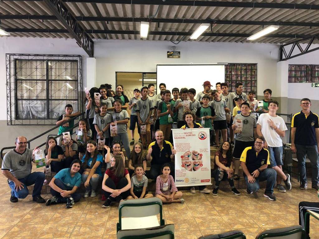 O Rotary Club de Guarapuava Lagoa desenvolveu na sexta-feira, dia 25, o programa “Sorriso Saudável, Futuro Brilhante”, da Colgate. Foram distribuídos 450 kits de higiene bucal para alunos do sexto e sétimo ano do Colégio Estadual do Campo de Palmeirinha e da Escola Municipal do Campo Vila Palmira, além de palestra sobre a importância da saúde bucal e como deve ser feita a escovação bucal.