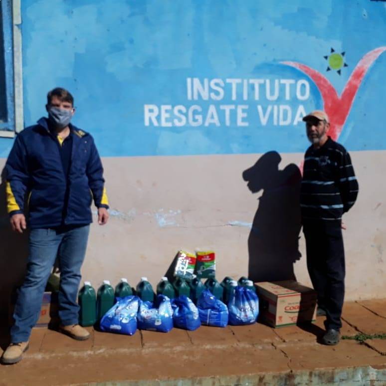 O Rotary Club de Guarapuava Lagoa realizou nesta quinta-feira, 07 de maio de 2020, em Guarapuava, realizou a entrega de materiais de limpeza ao Instituto Resgate Vidas. A entidade atende 28 pessoas com grave risco de saúde e social.